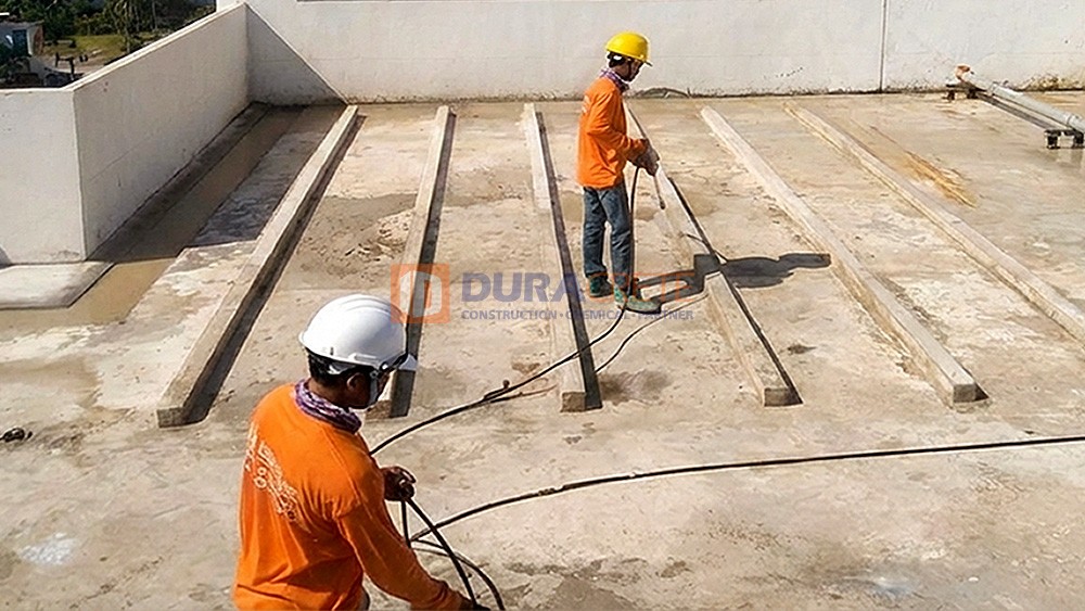 พื้นผิวดาดฟ้าและหลังคามักสะสมฝุ่นละออง คราบน้ำมัน ตะไคร่น้ำ เชื้อรา และคราบเกลือ (efflorescence) ซึ่งเป็นอุปสรรคต่อการยึดเกาะของวัสดุซ่อมแซมและวัสดุกันซึม เครื่องฉีดน้ำแรงดันสูงช่วยชะล้างสิ่งสกปรกที่ฝังแน่นในรูพรุนของคอนกรีตได้อย่างมีประสิทธิภาพ ทำให้พื้นผิวสะอาดพร้อมสำหรับขั้นตอนถัดไป