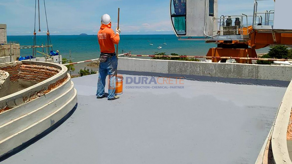 งานติดตั้งระบบกันซึม ชนิด ACRYLIC POLYMER รุ่น DURAROOFLEX โครงการ คอนโดมิเนียม THE PANORA ESTUARIA นาจอมเทียน จ. ชลบุรี